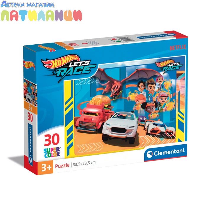Подарете на детето си скоростно забавление с този цветен пъзел Hot Wheels от Clementoni! Съставен от 30 големи части, той е идеален за малките фенове на състезателните коли и високите скорости.