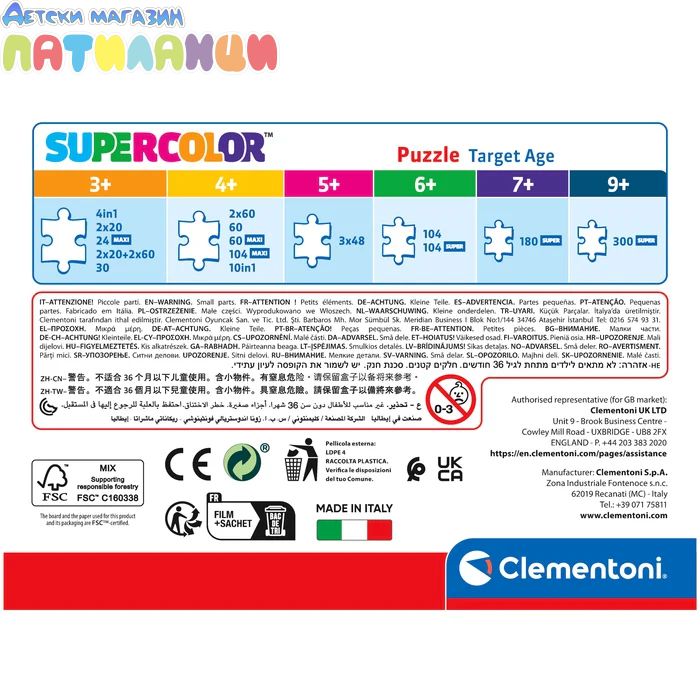 CLEMENTONI Ви предлага най-пълната колекция от пъзели с размери, вариращи от 30 до 42000 парчета и с най-добрите снимки и най-забавните герои.
