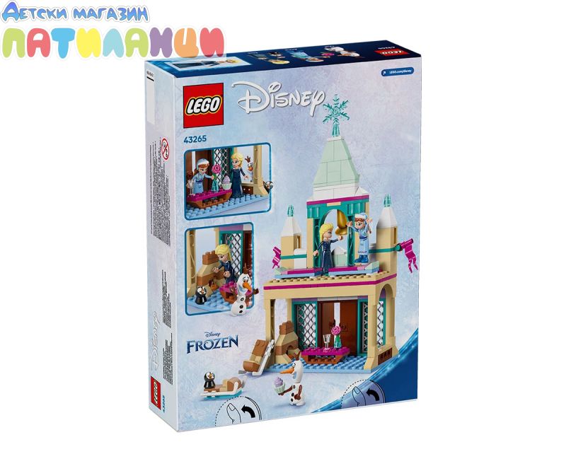 Зимните включвания очакват деца и фенове на възраст над 5 години със забавна конструкторска приставка LEGO® ǀ Disney Frozen Замръзналият замък на Арендел (43265), включваща замък за конструиране и игра с отварящи се врати, трапезария и баня, две шейни за конструиране, с които децата могат да се състезават, и още забавни елементи за разказване на историите. Освен това комплектът с модел за конструиране включва фигури миникукли LEGO ǀ Disney на Елза и Анна и фигура на снежен човек LEGO ǀ Disney на Олаф. Този висококачествен детски строителен комплект е пълен с елементи и функции, които вдъхновяват удовлетворяващата игра, и е страхотен подарък Disney за рожден ден за момичета и момчета и фенове на филма Замръзналото кралство на Disney. Детската строителна играчка се комбинира добре с други строителни комплекти LEGO ǀ Disney от гамата (продава се отделно) и е пълна с креативни идеи за задоволително конструиране и игра. За още повече забавление децата могат да се наслаждават на лесно и интуитивно строително приключване с приложението LEGO Builder, в което могат да сбъркат и завъртят 3D моделите, да запазят комплекти и да наблюдават напредъка си.
