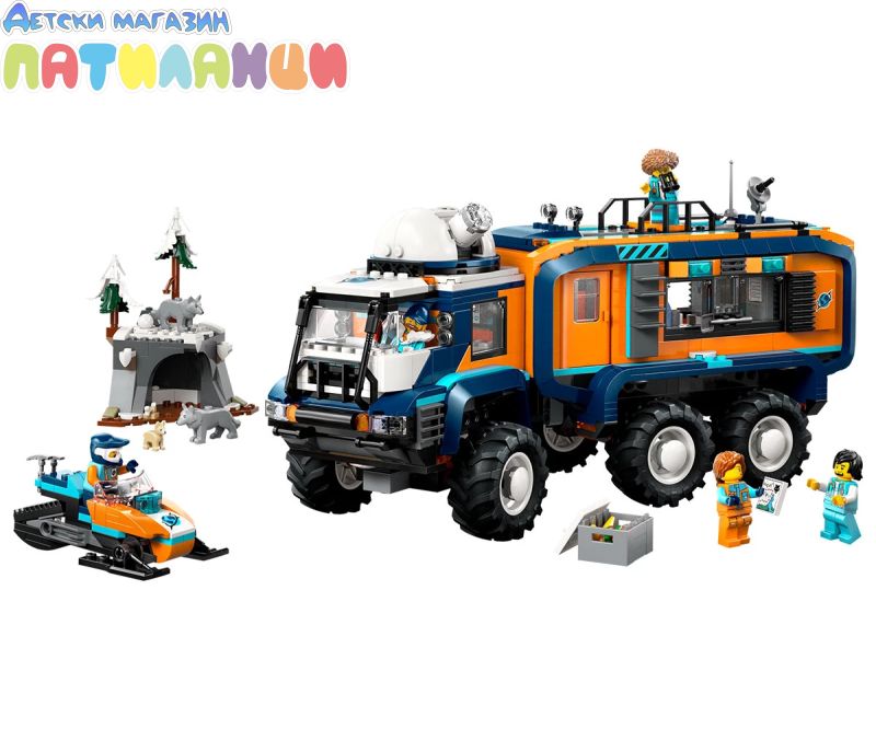 Зарадвайте начинаещите приключения с LEGO® City Камион с научна лаборатория за арктически изследователи (60471) за феновете на научните играчки на възраст над 8 години. Този реалистичен комплект за игра включва подвижен камион с окачване с 6 гуми с дълбок грайфер и въртяща се обсерватория на покрива, плюс страхотни интериорни детайли, включително шофьорска кабина, лаборатория и уютна жилищна зона с баня, кухня и спалня. Децата получават и моторна шейна и арктическа пещера, плюс 5 минифигури на изследователи и 3 фигури на полярен вълк, включително вълче, за игра с въображение. Този комплект за игра LEGO с камион включва печатно ръководство за построяване и цифрови инструкции в приложението LEGO Builder. Тук децата могат да машинират и завъртат модели в 3D, да запазват комплекти и да проследяват напредъка си, докато строят. Комплектът LEGO City включва превозни средства, структури и герои, които вдъхновяват въображаемата игра. Децата могат да добавят този комплект към други творчески играчки от гамата LEGO City (продават се отделно) за още по-големи приключения. Комплектът съдържа 1064 части.