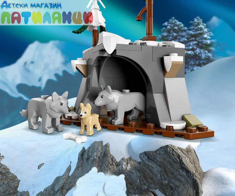 Какво има в кутията? – включва изследователски камион, моторна шейна и сцена с арктическа пещера, плюс минифигури на шофьор, фотограф, учен, медик и механик и 3 фигури на полярен вълк;