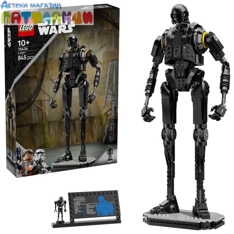 Създайте страхотен експонат с тази детайлна играчка за построяване LEGO® Star Wars™ Дроид за сигурност K-2SO (75434) за момчета, момичета и всички фенове. Този строителен комплект предлага на децата възнаграждаващо творческо предизвикателство докато улавят автентичните детайли на K-2SO, както може да се види в сезон 2 на Star Wars: Andor™. Покажете K-2SO на стойката и нагласете главата и ръцете на дроида от тухлички, за да промените експоната. Страхотен подарък за фенове наStar Wars, комплектът включва и информационна табелка за K-2SO и фигура LEGO на дроид K-2SO със стандартен размер, която да добавите към тази поразителна фантастична украса на дома. Открийте инструкции „стъпка по стъпка“в кутията и разгледайте приложението LEGO Builder за инструменти за интуитивно 3D мащабиране, завъртане и визуализиране, за да подобрите конструирането. Комплектът съдържа 845 части.