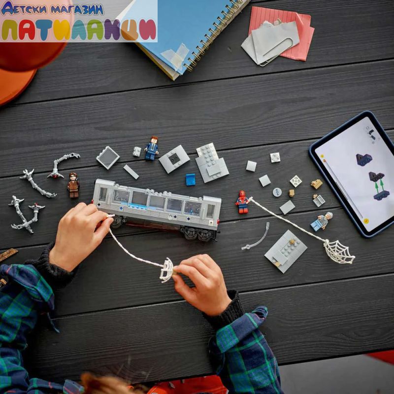 Колекционерски артикули LEGO® ǀ Marvel – минифигурата на Спайдърмен има глави с маска и без маска, а повдигащият се покрив на влака осигурява достъп до интериора със седалка за пътник