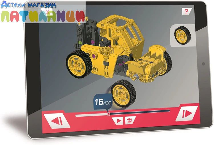 Комплект за сглобяване, който ви позволява да се забавлявате, сглобявайки телескопичен мотокар. Той включва зъбни колела и специфични компоненти за изграждане на функционална система за управление и възпроизвеждане на движенията на повдигащото рамо. Сглобяването на този модел развива ръчната сръчност и интелигентност. Илюстрираното ръководство и 3D инструкциите предоставят просто и лесно за потребителя ръководство за сглобяване на модела. Произведено в Италия.
