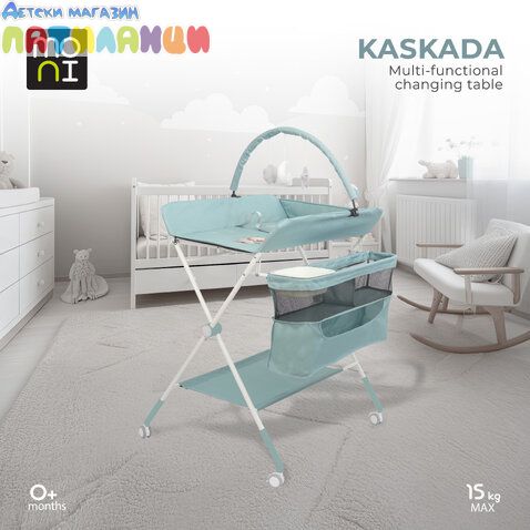 Мултифункционална маса за повиване Kaskada, Moni съчетава функционалност, комфорт и стил. Сгъваемата ѝ конструкция спестява място, а множеството удобства я правят незаменим помощник в ежедневната грижа за вашето бебе – от първия ден до около 12 месеца и максимално допустимо тегло 15 кг.