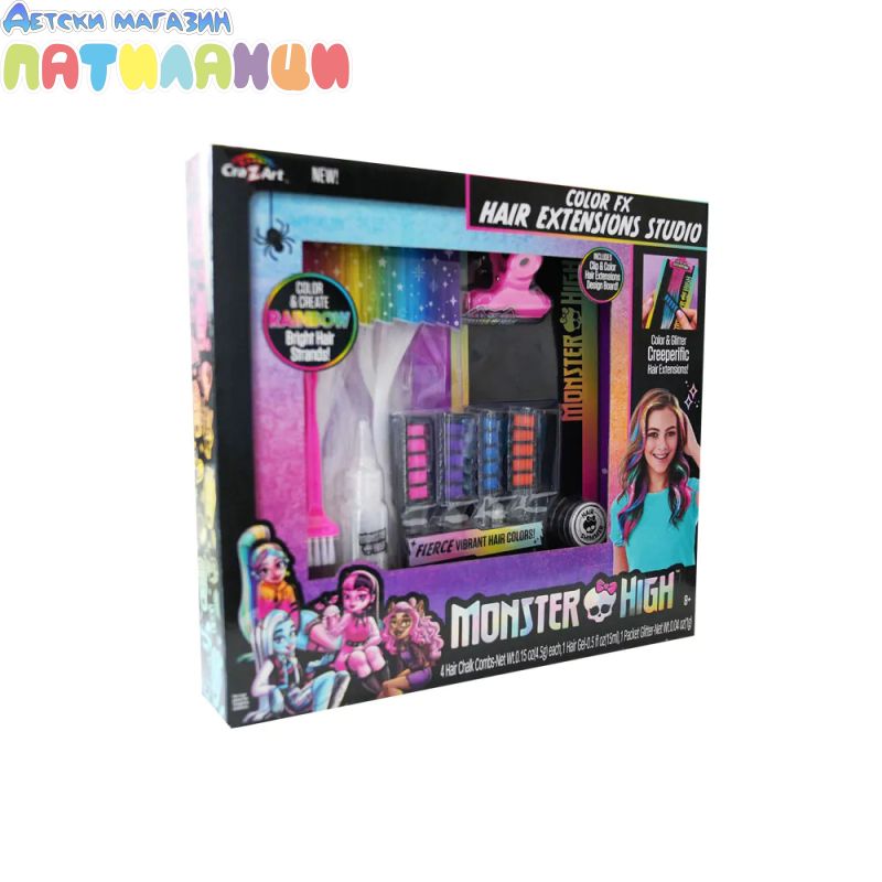 Създай уникални и смели прически като героините от Monster High! Комплектът включва цветни екстеншъни, аксесоари и инструменти за стилизиране, които позволяват на децата да изразят своята креативност и индивидуалност.