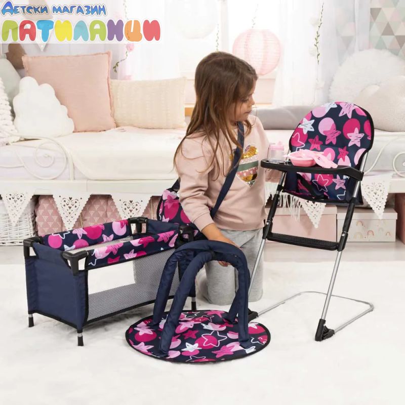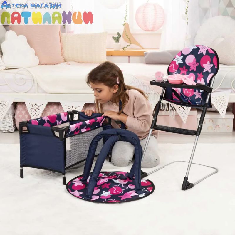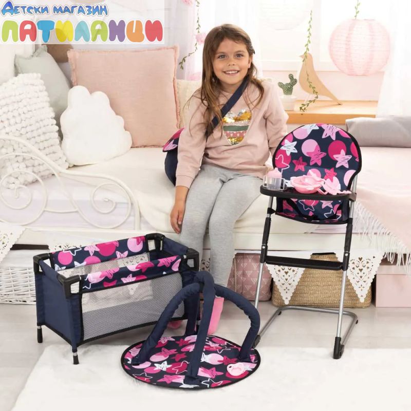 Мултифункционалният комплект 9 в 1 от BAYER е идеалният избор за малки „родители“, които искат да се грижат за своето бебе-кукла по най-реалистичния начин. Той съчетава легло, стол за хранене, активна гимнастика и още няколко практични варианта за игра, събрани в един продукт.