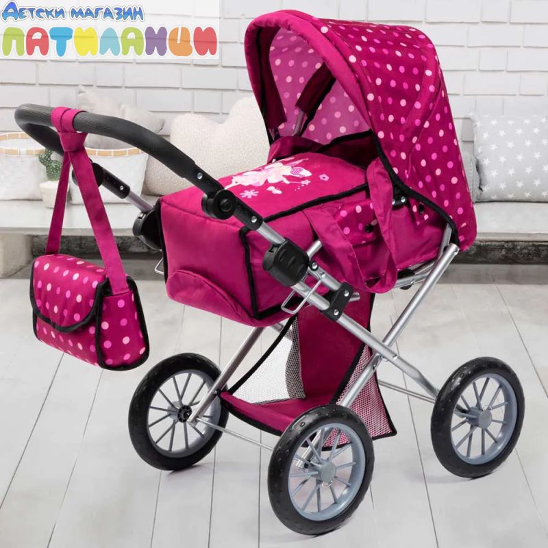 Количка за кукли City Star с чанта и порт бебе розова BAYER 13667AA