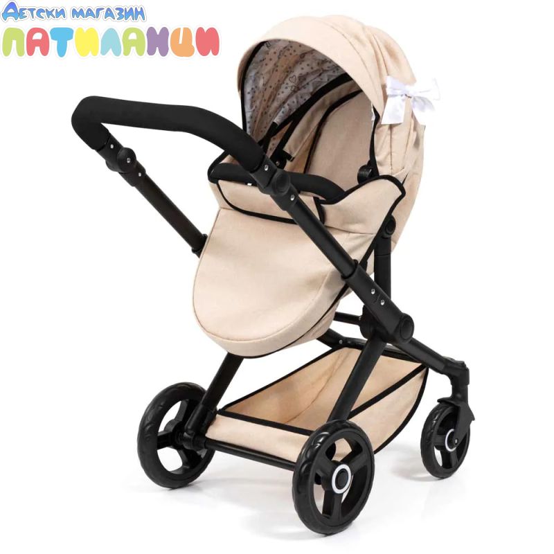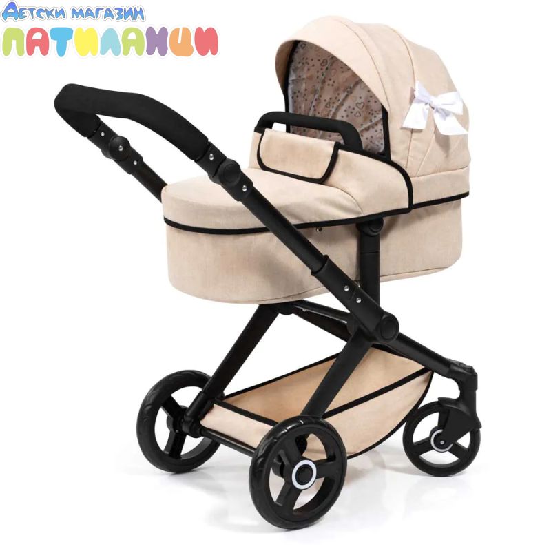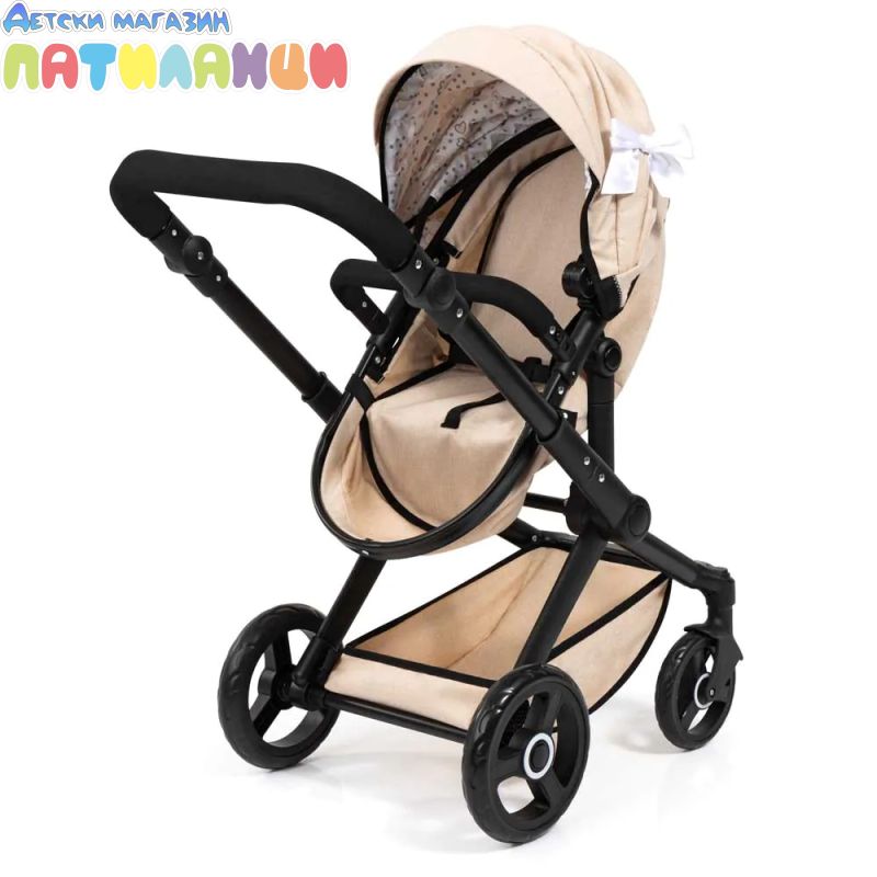 Комбинираната куклена количка XEO впечатлява с модерния си дизайн и е подходяща за кукли до 46 см.