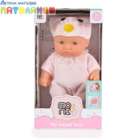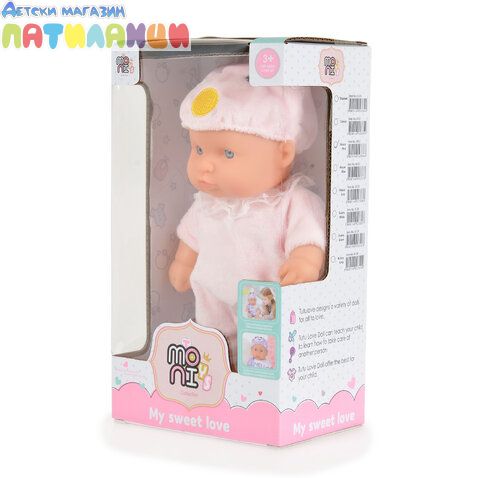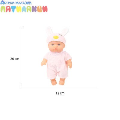 Сладка и компактна кукла, с височина 20 см — перфектна за гушкане, игри в движение или като приятел под ръка. Изработена от комбинация от пластмаса и текстил, което съчетава устойчивост с нежно докосване. Подходяща е за деца над 3 години.