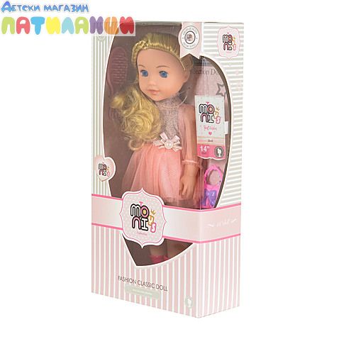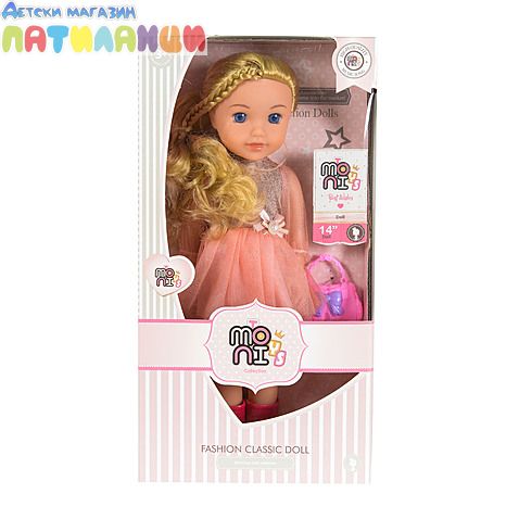 Реалистична кукла с размер 36 см и включени аксесоари – гребен и елегантна чанта.