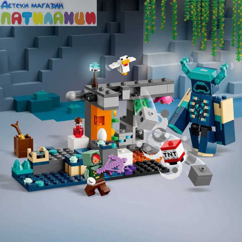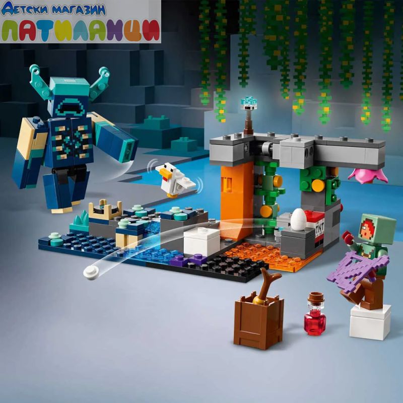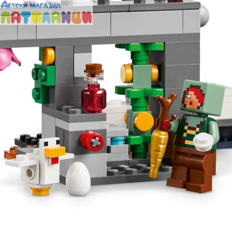 Фигури Minecraft® – този комплект LEGO® включва минифигура Minecraft на Безшумен рейнджър, пиле Minecraft и голям Пазач от Minecraft за конструиране с подвижна глава, ръце и крака