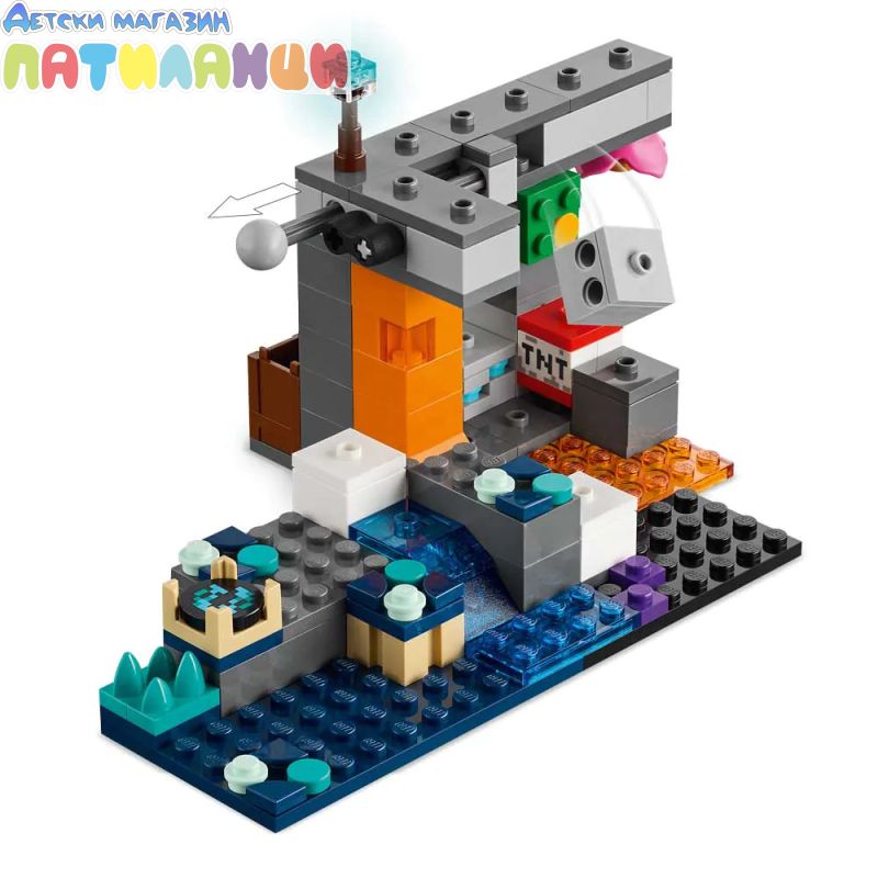 Бойна играчка Minecraft® с Пазач – децата използват функциите за експлодиращ TNT и падащи скали, докато копаят за диаманти в тучната пещера и се бият с голямата фигура на Пазача