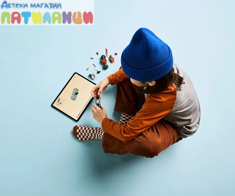 Комплектът за игра „Състезанието с мотоциклети на Кай“ (71838) позволява на момчета и момичета на възраст над 6 години да пресъздадат забързани сцени от сезон 3 на ТВ сериала NINJAGO® Dragons Rising. Изпълненият с екшън комплект мотоциклети включва два нинджа мотоциклета с подвижни колела: състезателният велосипед на Кай, украсен с два кинжала, и демоничният мотор на злия призрачен драконов скаут. Комплектът с нинджа превозни средства включва две минифигури NINJAGO, които да карат мотоциклетите: Кай, въоръжен с прозрачно острие и два златни меча катана, и призрачен драконов скаут с меч, така че децата могат да се насладят на страхотна въображаема игра сами или с приятелите си, докато организират битки между доброто и злото. Гамата комплекти LEGO® NINJAGO и нинджа играчки за конструиране за деца включва дракони, превозни средства и храмове, така че феновете да могат да разиграват ролеви приключения със своите герои. Всеки комплект за игра с нинджи може да бъде създаден с приложението LEGO Builder, което направлява вас и вашето дете в лесното и интуитивно строително приключение. Комплектът съдържа 79 части.