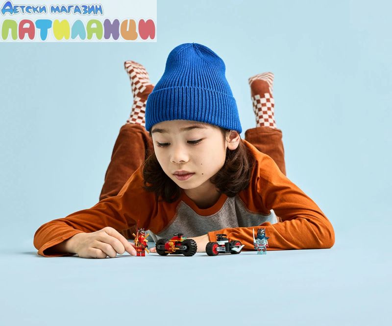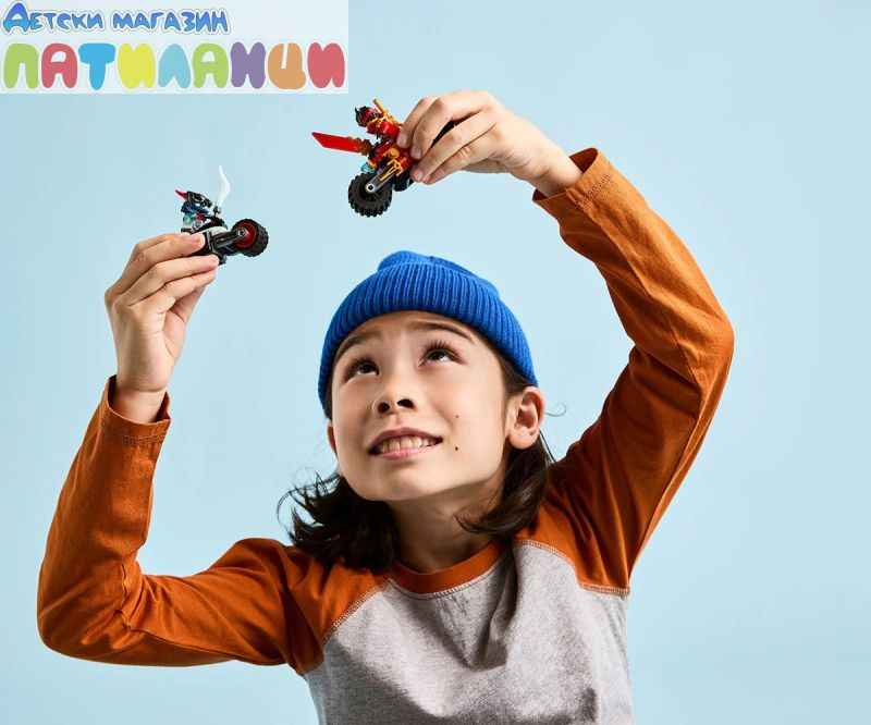 По-големи нинджа приключения – потърсете още играчки LEGO® NINJAGO® (комплектите се продават отделно), за да засилите екшъна със „Състезанието с мотоциклети на Кай“;