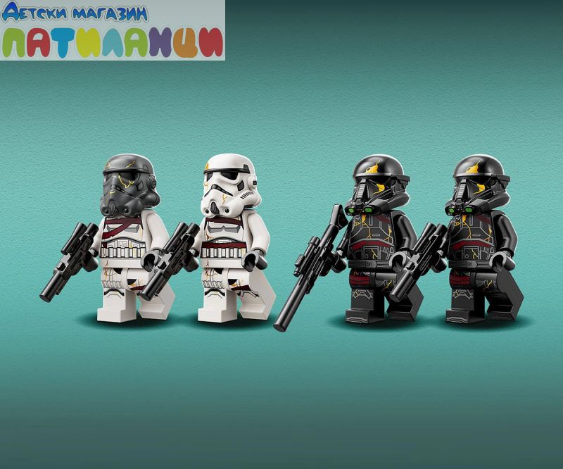 4 минифигури LEGO® Star Wars™ – двама щурмоваци на смъртта и двама нощни щурмоваци, всеки с шлем и бластер;