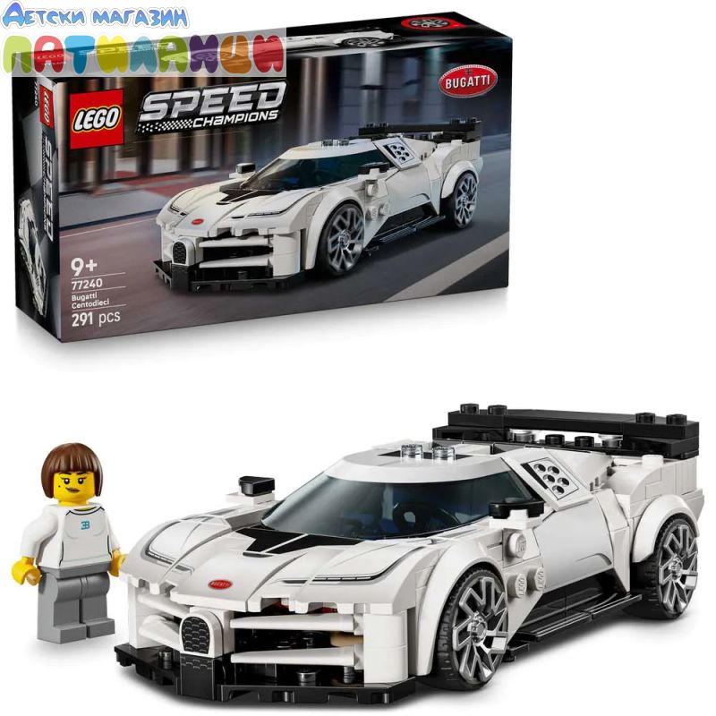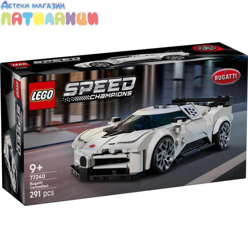 Деца на възраст над 9 години могат да колекционират, конструират, играят и показват този модел LEGO® Speed Champions Хиперспортна кола Bugatti Centodieci (77240). Създадена в чест на легендарния модел Bugatti EB 110, тази впечатляваща играчка за момчета и момичета има много известни дизайнерски детайли от реалната кола. Моделът на кола Bugatti от LEGO® включва петте кръгли въздуховода от двете страни на спортната хиперкола Centodieci, нейните уникални джанти, фарове, радиаторна решетка във форма на подкова, задно крило и 4 задни ауспуха. Комплектът с кола LEGO се предлага и с минифигура на шофьор на Bugatti, която децата могат да поставят зад волана за ролеви екшън. Строителните комплекти LEGO Speed Champions позволяват на деца и страстни фенове на автомобили да създават реплики на някои от най-емблематичните автомобили в света. Всяка кола може да бъде построена с помощта на приложението LEGO Builder, което насочва вас и вашето дете по време на лесно и интуитивно цифрово строително приключение. Комплектът съдържа 291 части.
