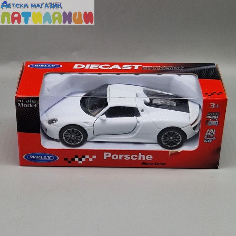 Метална кола Porsche 918 Spyder 1:34 Welly бял