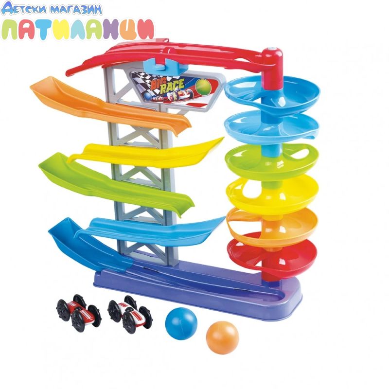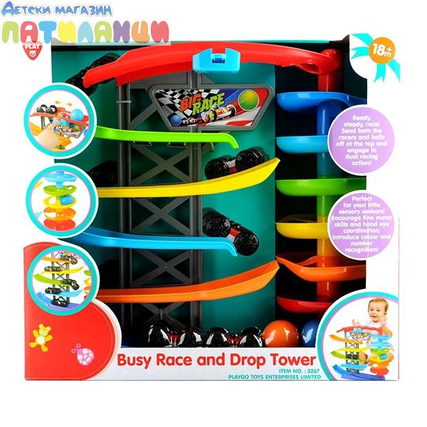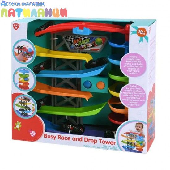 Представяме ви най-доброто допълнение към колекцията за игра на вашето мъниче , PLAY - Busy Race And Drop Tower. Тази жизнена и завладяваща играчка е предназначена да плени и стимулира умовете на децата в предучилищна възраст , насърчавайки ги да изследват и разбират основите на причината и следствието, гравитацията и скоростта по най-забавния начин.