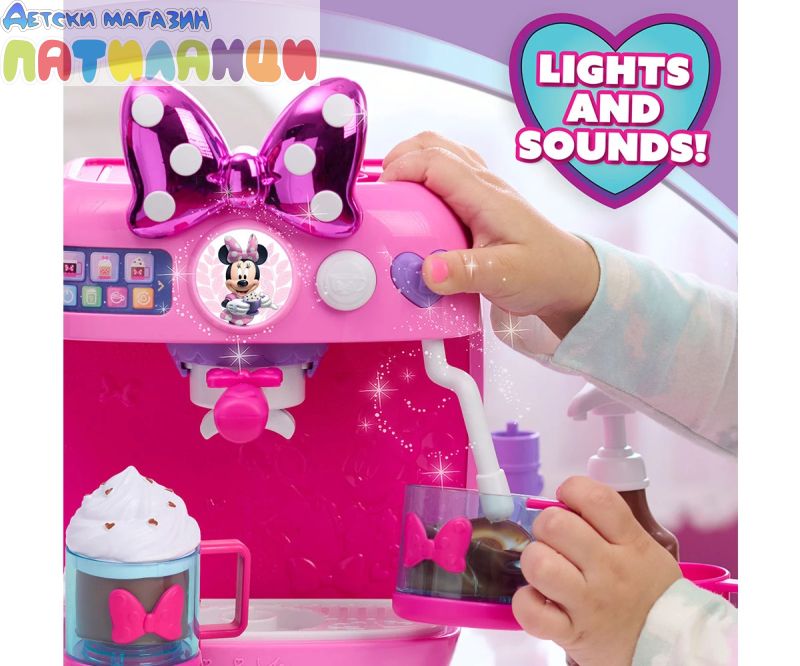 - Светлини и звуци: Реалистични ефекти за разбиване на мляко, приготвяне на кафе и забавни реплики на Мини Маус;