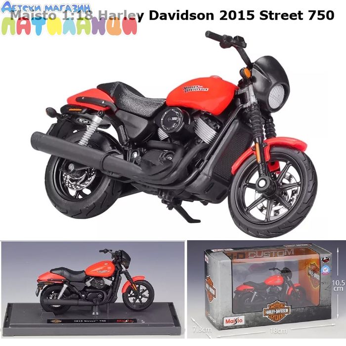 Това е миникопие на един "Харли", създадено по лиценза на "Maisto Tech", което точно повтаря оригинала. Множеството детайли са прецизно изработени от метал и пластмаса и приликата с истинското возило го прави страхотно попълнение за колекционери, както и привлекателна играчка за децата.