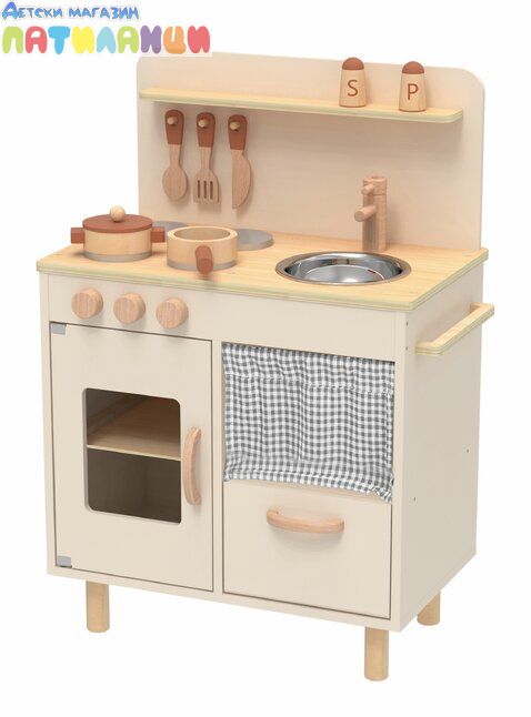 Тази красива винтидж кухня с нежни дървени елементи и романтично перденце е създадена, за да превърне играта в истинско удоволствие. Подходяща за деца над 3 години, тя внася допълнителен уют както в детската стая, така и в дома.
