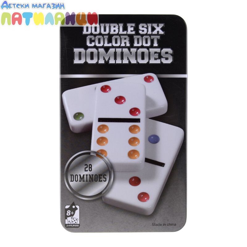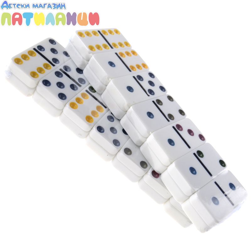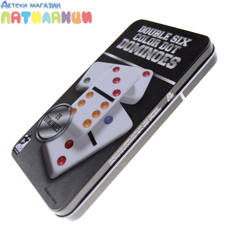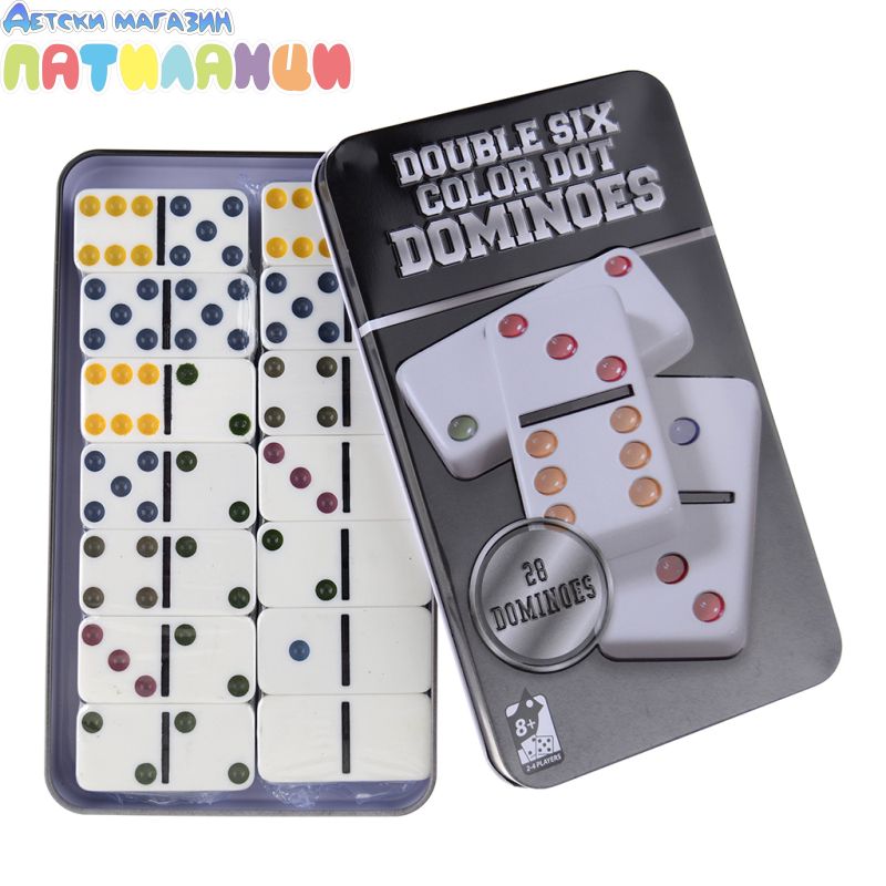 Домино в кутия с бели плочки