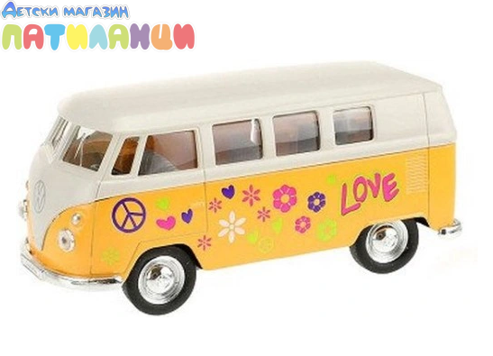 Метална кола Volkswagen Classical Bus T1 1963 жълт Welly 1:34