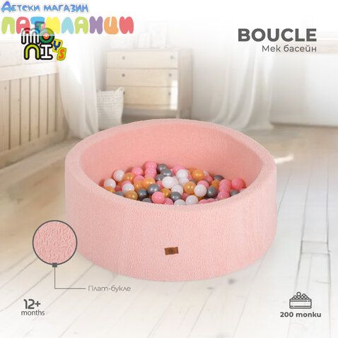 Превърнете играта у дома в истинско приключение с мекия басейн Boucle от Moni Toys! Изработен от висококачествен плат букле и пълнен с 200 ярки цветни топки с диаметър 5,5 см, този басейн ще осигури безкрайни часове весела и безопасна игра.