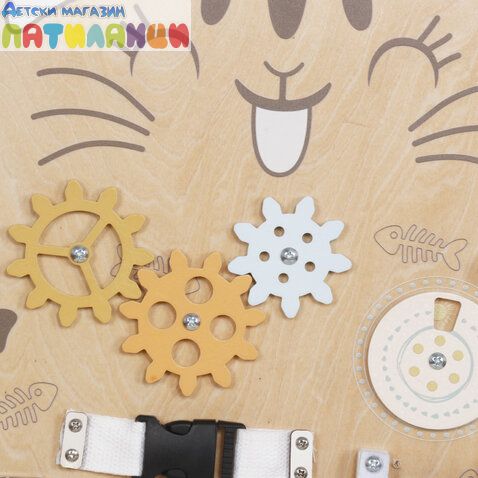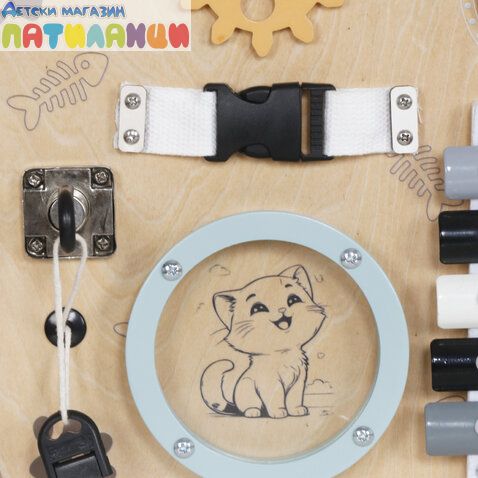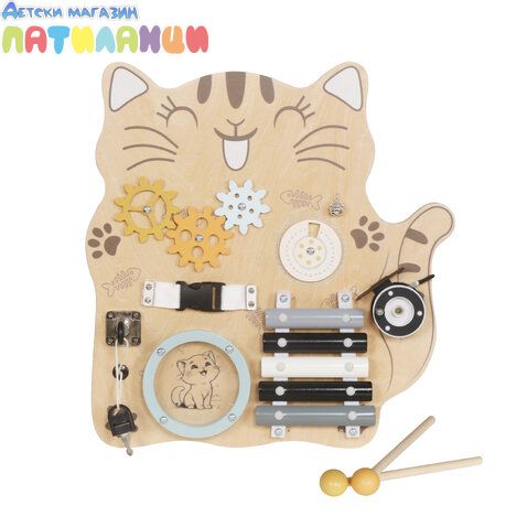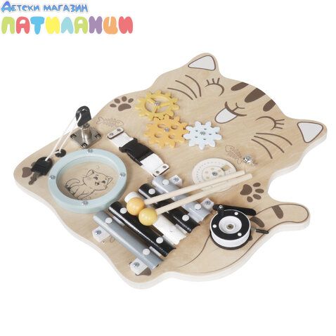 Дървената Монтесори дъска Cat е създадена, за да стимулира любопитството и развитието на малките изследователи чрез игра. Тази активна дъска предлага разнообразни занимания, които насърчават фината моторика, логическото мислене и сетивното възприятие.