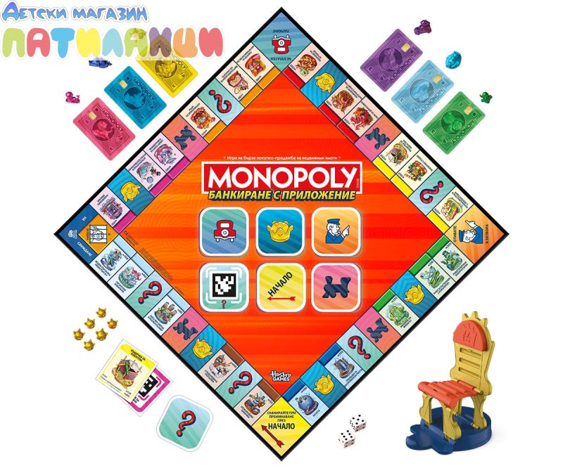 Монополи Банкиране с приложение – първото Monopoly с мобилно приложение! Това е първата версия на Monopoly, която използва приложение за лесно банкиране, мини игри и още много изненади!