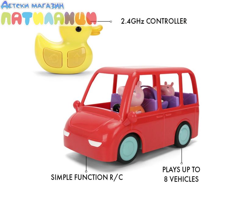• Дистанционно управлявана кола „Family Car R/C“ с 3 вградени фигурки на Прасенце Пепа и 1-канално дистанционно управление (2.4 GHz)
