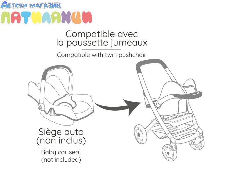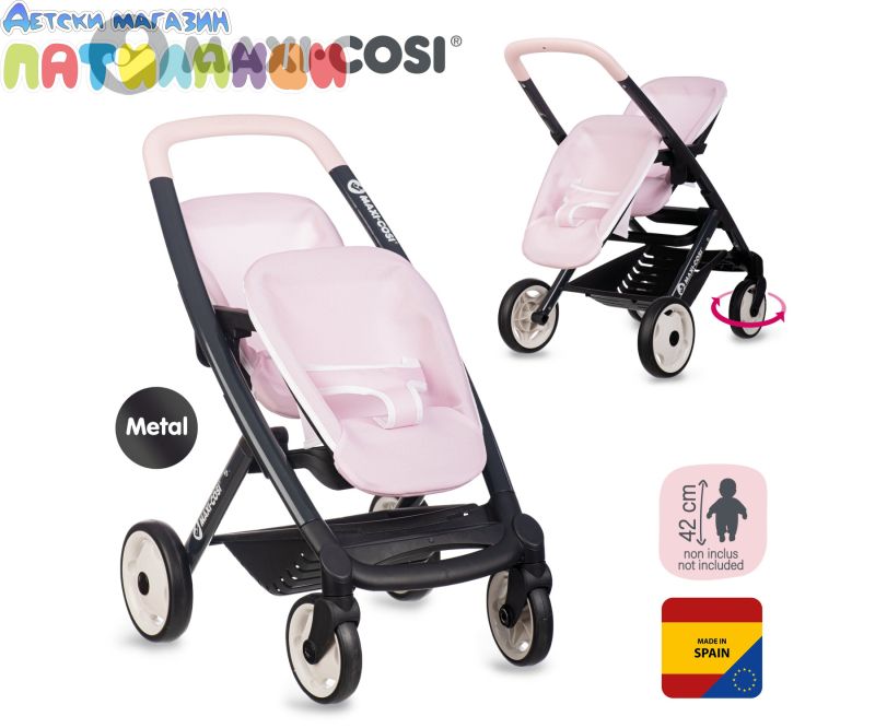 Позволете на детето да изведе за разходка не една, а две любими кукли с невероятно стилната Smoby Maxi-Cosi Pink — лицензирана количка, вдъхновена от истинските модели, създадена за малки майки и техните кукли.