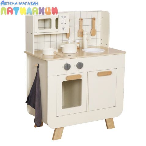 Дървената кухня Tinny е перфектният избор за малките готвачи, които обичат да творят и да се забавляват в света на кулинарните игри! Изработена с внимание към детайла, тя предлага реалистичен дизайн и множество възможности за игра.