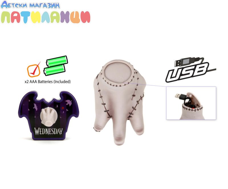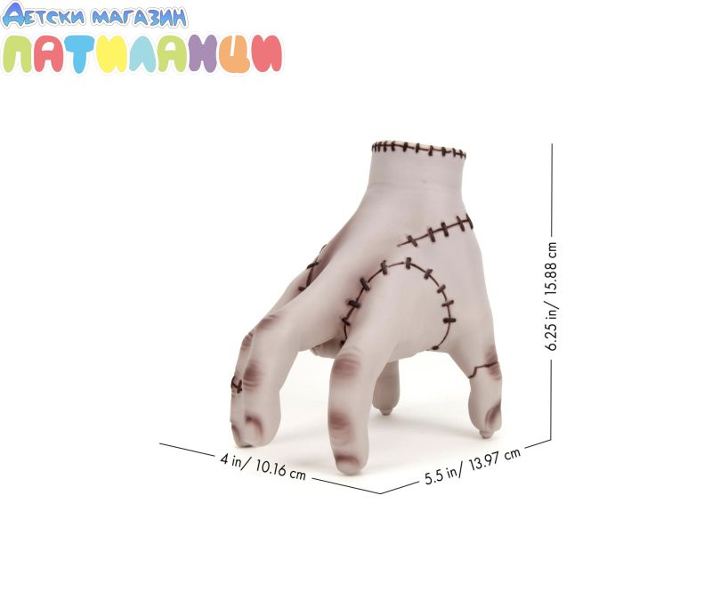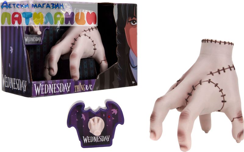 Thing от Jada Toys е уникална колекционерска и игрална реплика на зловещата ръка от сериала „Сряда“. Изработена в реален размер от мека пластмаса с автентични шевове, тя пресъздава мрачния чар на емблематичния герой от „Семейство Адамс“. Официално лицензираната играчка е проектирана като дистанционно управляван спътник, който ще внесе доза тъмно забавление във всяко приключение.