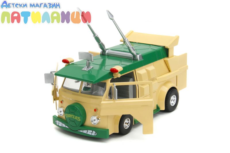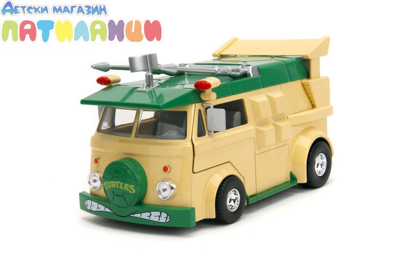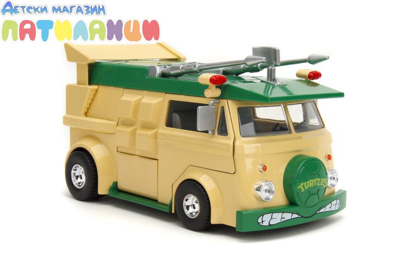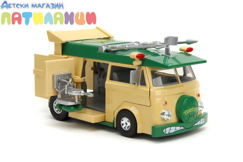 Мащабният модел 1:24 впечатлява с автентичен дизайн, високо качество и внимание към детайла. В комплекта е включена и фигурка на една от любимите костенурки нинджа!