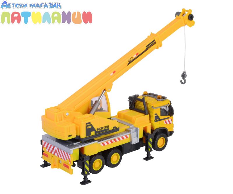 - Летящ високо - Когато положението стане наистина трудно, кранът Majorette, монтиран на камион, с въртящ се телескопичен кран, кабелна лебедка и кука, се втурва нагоре - напълно разгънато, рамото има обхват от 35 см!