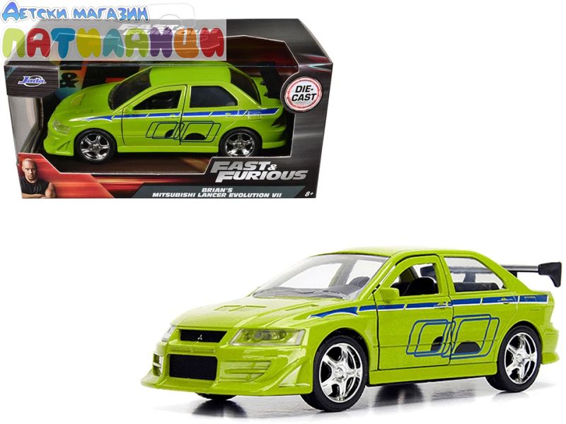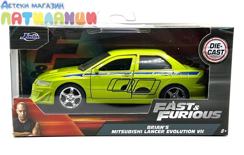 Метален автомобил Brian’S Mitsubishi Lancer EVOLUTION VII Fast & Furious 1:32 Jada 24075