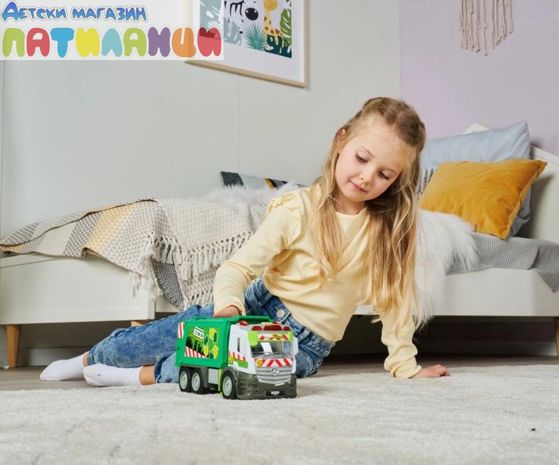 С този камион децата могат да пресъздадат истински сцени от града, да сортират отпадъци, да разиграват работата на сметосъбирач и да се забавляват часове наред. Играта развива фина моторика, координация и ролеви умения.