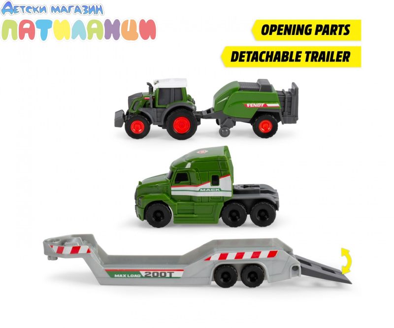• Реалистичен дизайн - Като официално лицензирани модели автомобили с реалистични детайли, играчката трактор Fendt и транспортерът MACK Anthem изглеждат точно като истинската селскостопанска техника.