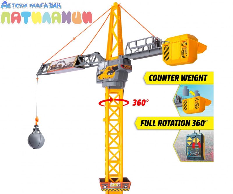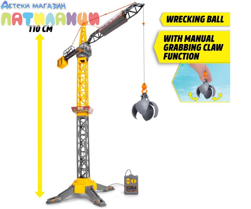 • XXL детски кран - Играчката кран с дистанционно управление Dickie Toys и аксесоарите са с впечатляващи размери от 110 см и канят малките строители на 3 и повече години да откриват, играят и експериментират.