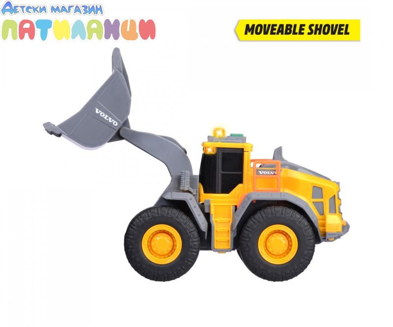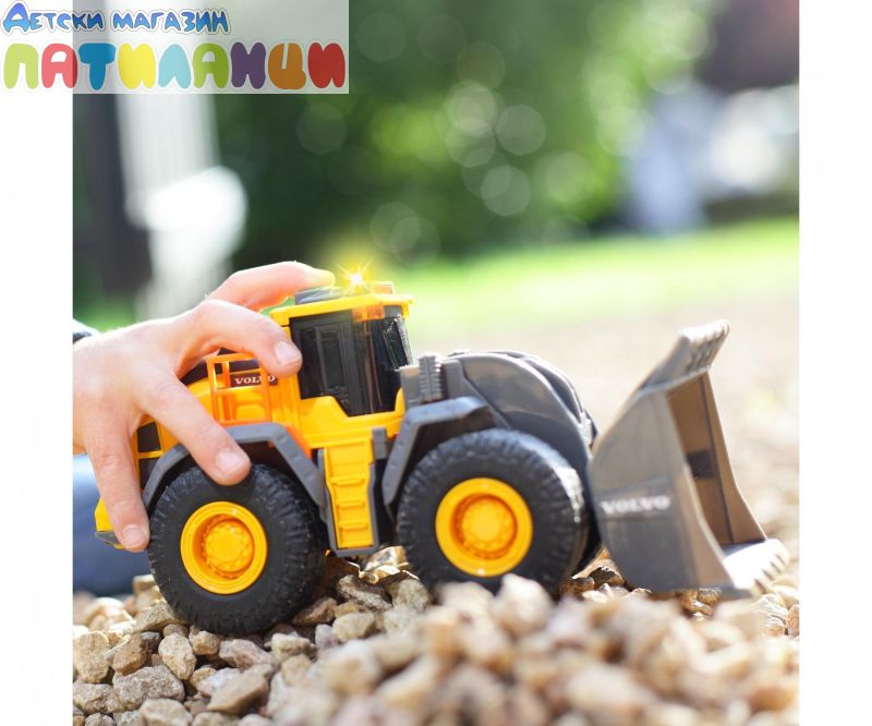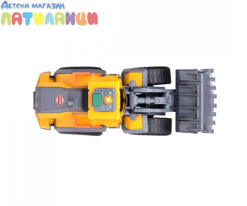 Проектиран за деца над 3 години, този яркожълт челен товарач е идеален за начинаещи млади строители. Той се предлага с голяма лопата, която може да се движи нагоре и надолу ръчно за транспортиране на материали. Лопатата може да се накланя и за изпразване на съдържанието ѝ – точно както на истинска строителна площадка! Подходящ за употреба на закрито и на открито, челен товарачът е идеален за пресъздаване на всякакви сцени от строителна площадка – възможностите са безкрайни! Официално лицензиран дизайн Миниатюрният челен товарач Volvo е оборудван с ярки светлини, монтирани на покрива, както и с реалистични звукови ефекти. С дължина от 23 см, той гарантирано ще привлече вниманието на всяка строителна площадка играчка. Нещо повече, всички необходими батерии (2x 1,5 V AA) са включени в продукта. Челен товарачът е официално лицензиран от Volvo и е идеален подарък за фенове на автомобили от всички възрасти.