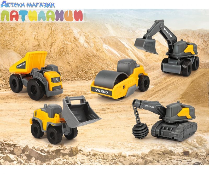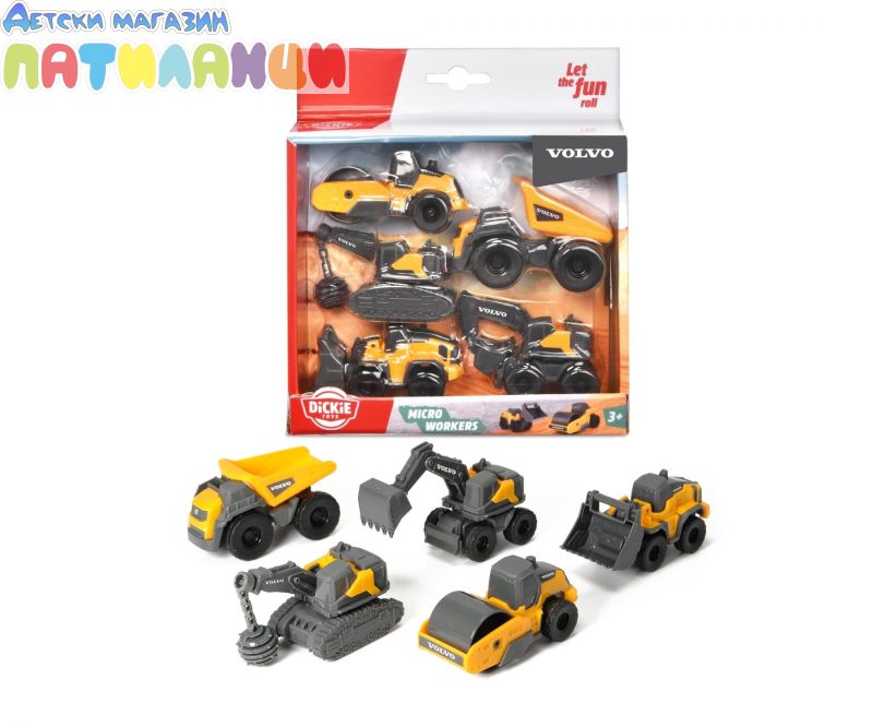 С количките Volvo Micro Workers от Dickie Toys, трудните задачи на строителните обекти в Toy Town вече стават наистина лесни: защото валякът, разрушителната машина, земекопната машина, багерът и самосвалът в този комплект от пет части са готови за всичко! Произведени по лиценз, тези колички играчки със свободен ход са проектирани до последния детайл въз основа на оригиналните модели Volvo.