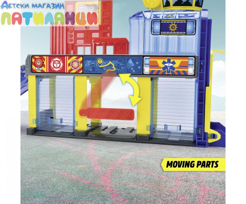 • 3-в-1 оперативен център - всичко под един покрив: Детайлният център за спешна помощ за деца на възраст 3 и повече години съчетава полицейски участък, пожарна и паркинг на 2 нива - включително превозни средства!