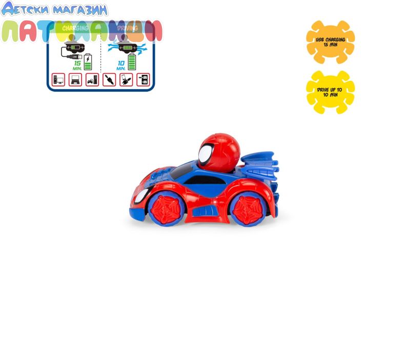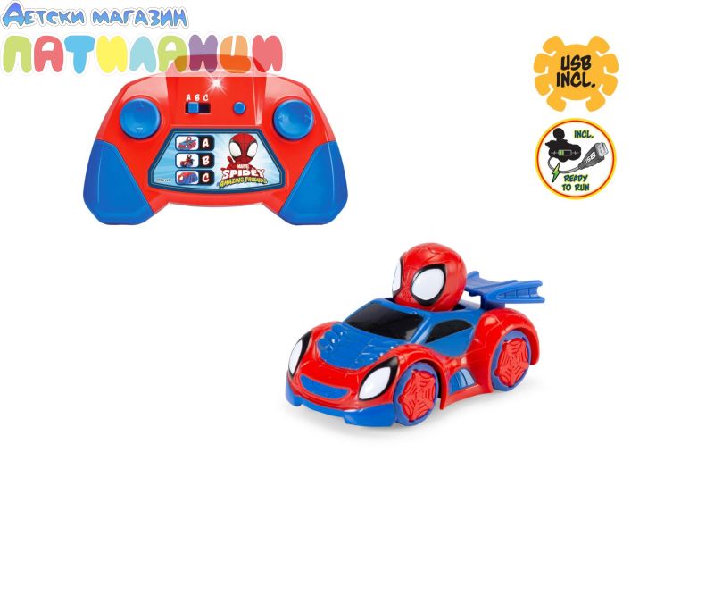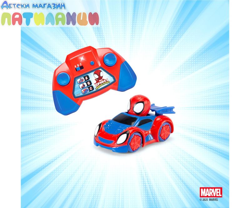 - Дистанционно управлявана кола с вграден Spidey и 2-канално радиоуправление (2.4 GHz)
