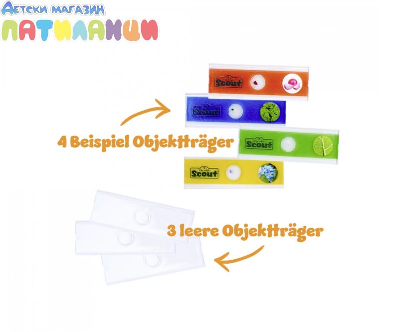 Включени аксесоари: 4 готови диапозитиви с проби и 3 празни диапозитиви за вашите собствени проби.