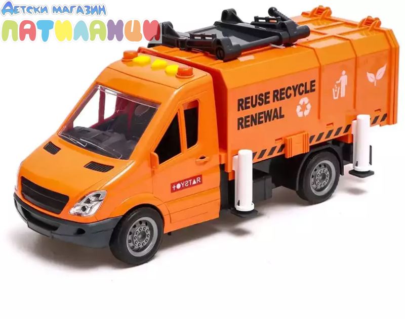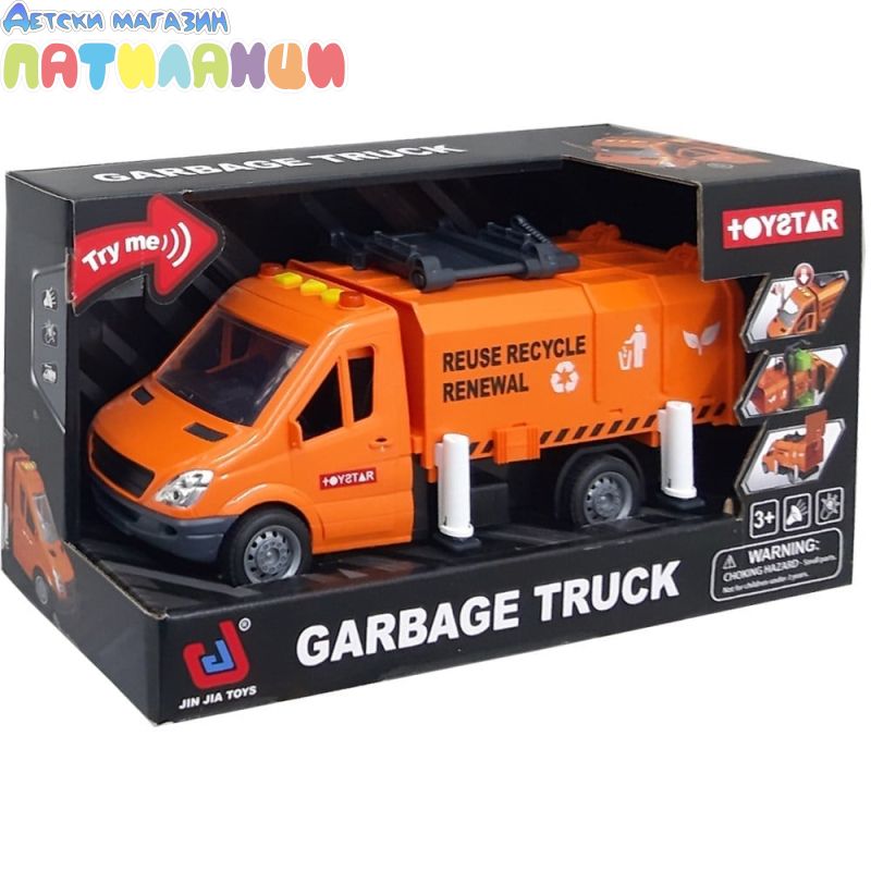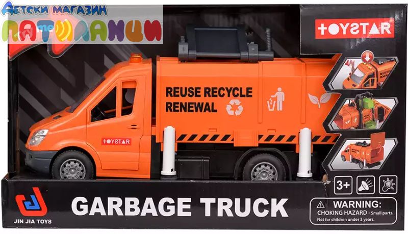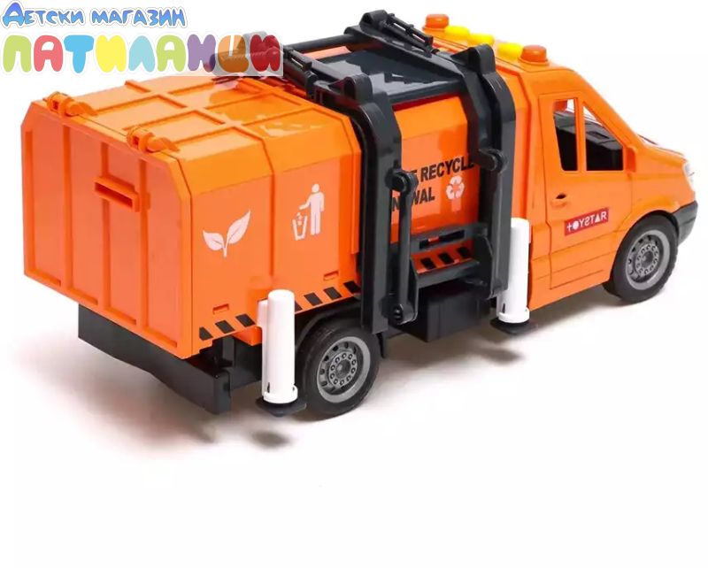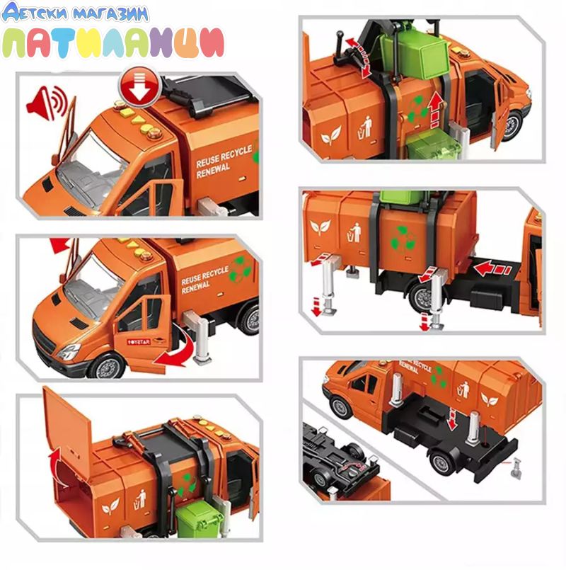 Време е за събиране на отпадъците – с реалистичния камион за боклук .Малките почитатели на специализирани превозни средства ще бъдат възхитени от този реалистичен модел на камион за отпадъци, вдъхновен от истинските камиони. Със своя автентичен дизайн, светлинни и звукови ефекти, подвижни части и функция за повдигане и изсипване на кофа, тази играчка ще превърне всяка игра в истинско приключение!