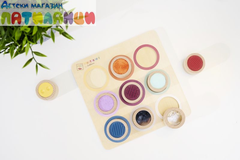 Докосването е важно за развитието на сетивата на детето ви. Играта с различни повърхности и материали стимулира усещането за допир. Нашата Монтесори тактилна дъска има 9 тактилни цилиндъра, върху които детето ви може да усеща повърхностите и текстурите. Тактилната дъска Монтесори е изработена от 100 % сертифицирани от FSC бук и шперплат и е подходяща за деца на възраст над 3 години.