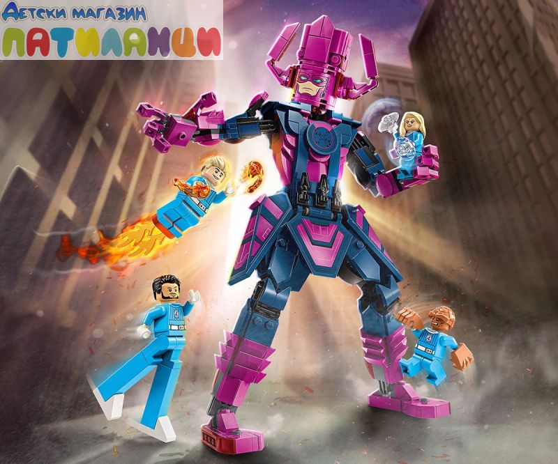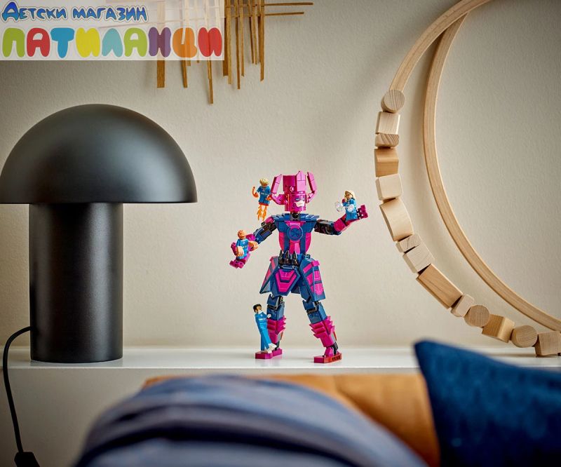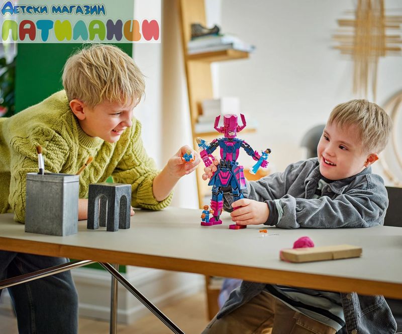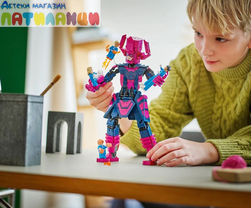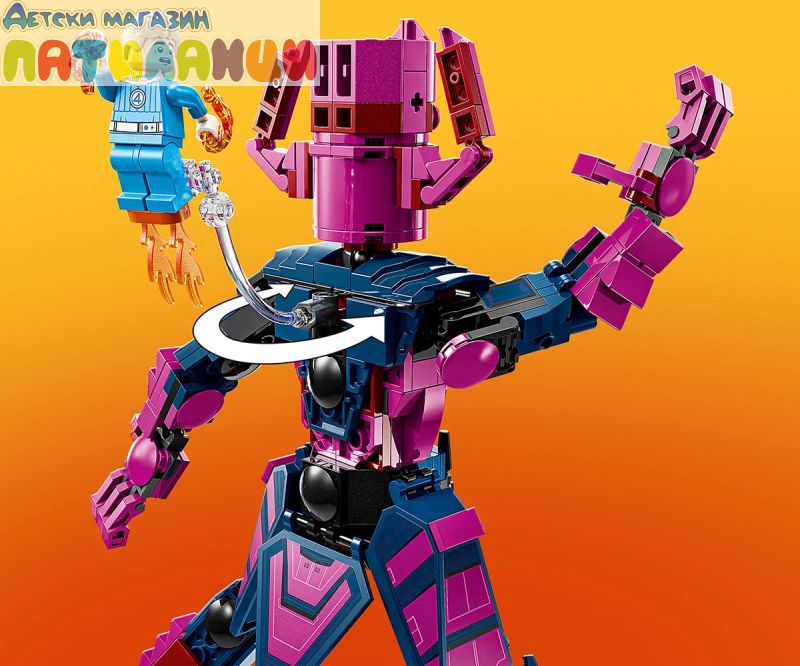 Голяма фигура LEGO® ǀ Marvel – напълно подвижният модел на злодея от филма Галактус може да се нагласи в много различни позиции, за да позволи безкраен динамичен ексшън, докато децата разиграват ролеви битки с минифигурите на супергерои;