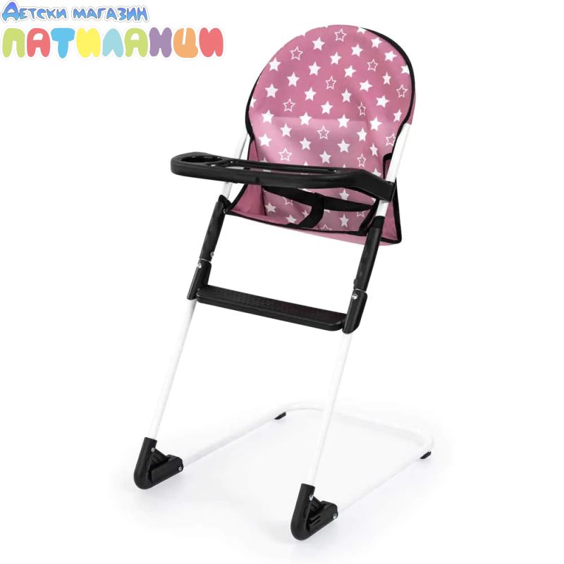 Столчето за хранене, включено в комплекта, има вграден поднос и колан за безопасност, за да може куклата да се храни като истинско бебе.